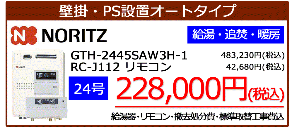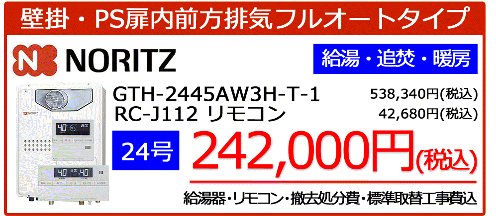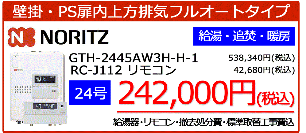 GTH-2445SAW3H-1 BL+RC-J112リモコンセット標準工事税込み