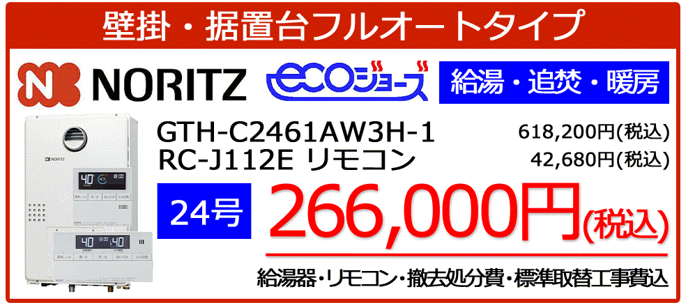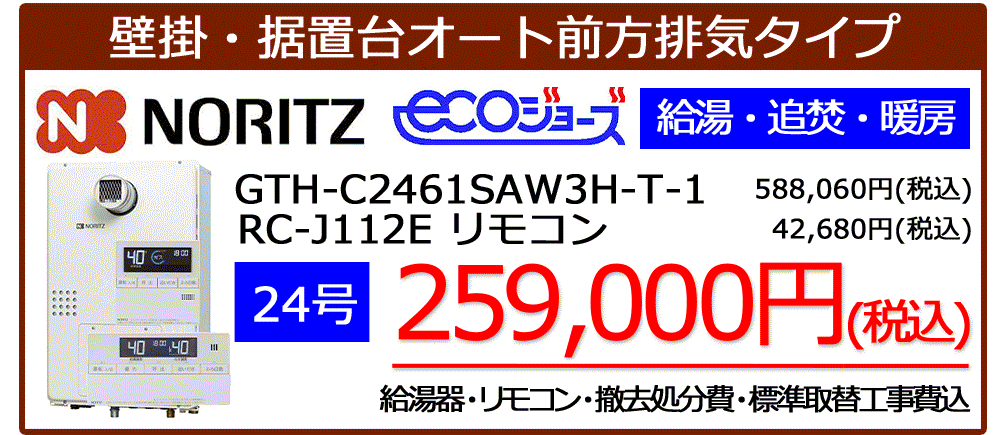 GTH-C2461SAW6H-1 BL+RC-J112Eリモコンセット標準工事税込み