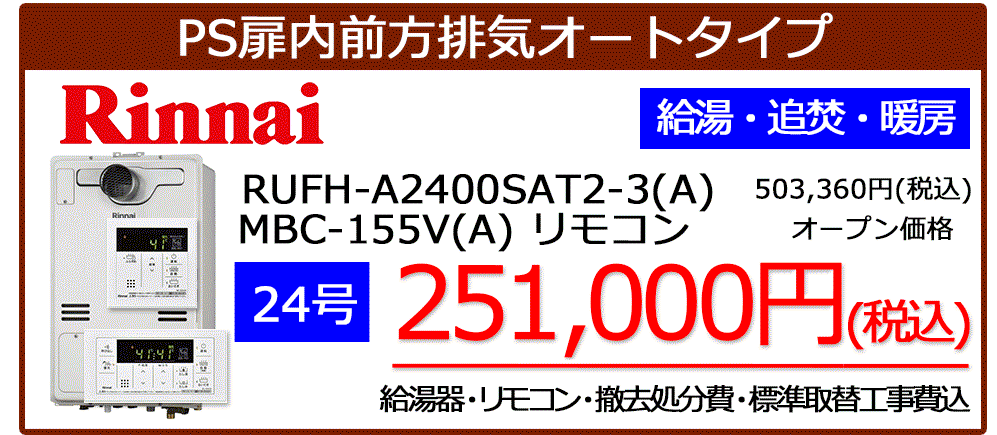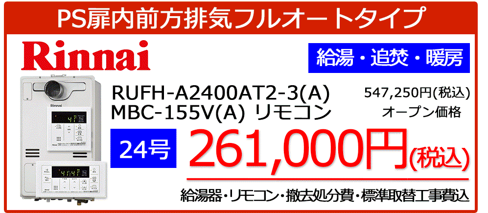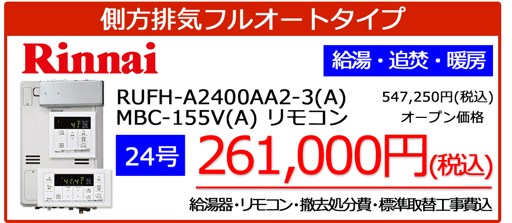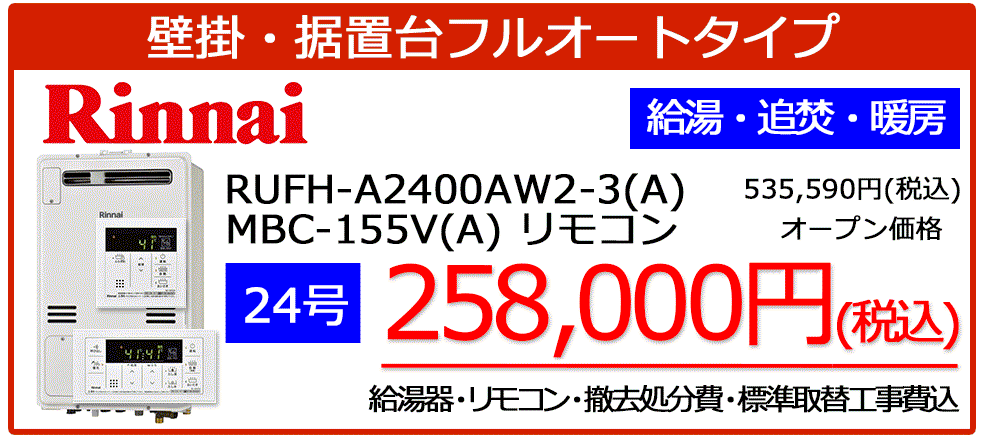 リンナイ暖房機能付き給湯器が工事税込みで安い!