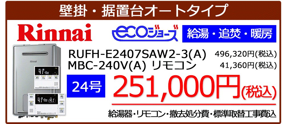 RUFH-E2407SAW2-3(A)+MBC-240V(A)リモコンセット標準工事税込み