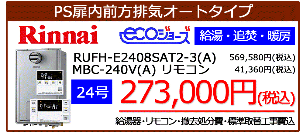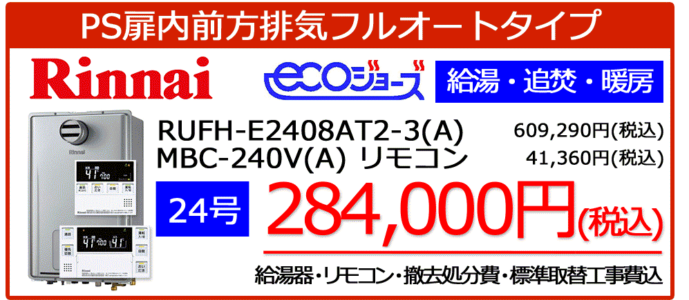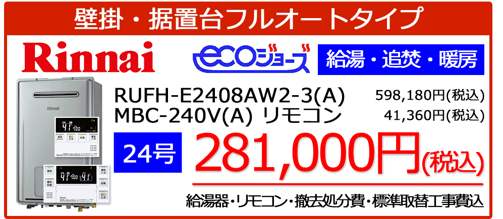 RUFH-E2408SAW2-3(A)+MBC-240V(A)リモコンセット標準工事税込み