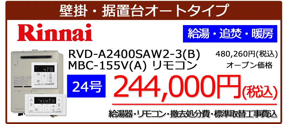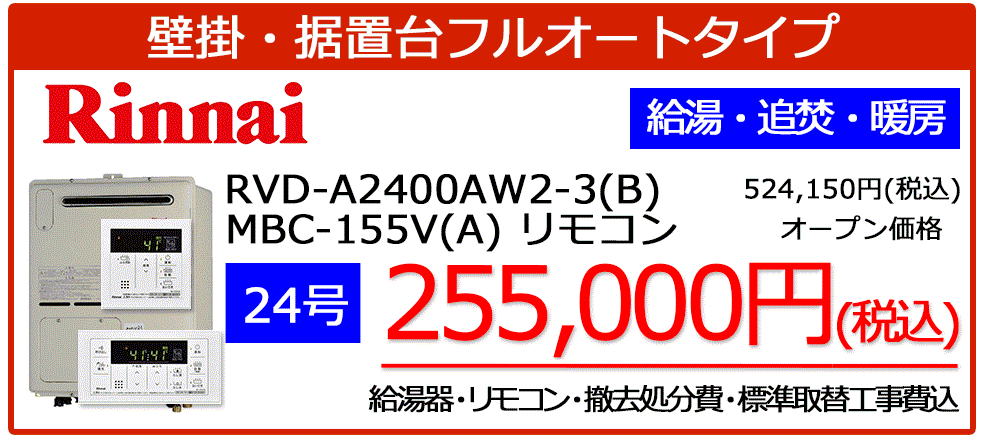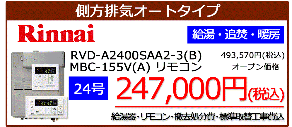 RVD-A2400SAWシリーズ+MBC-155V(A)リモコンセット標準工事税込み