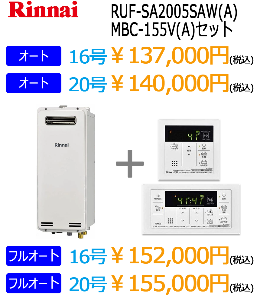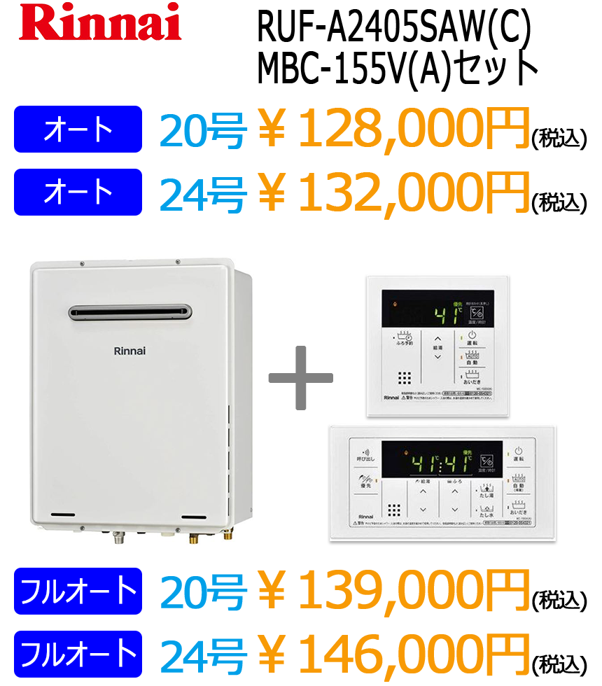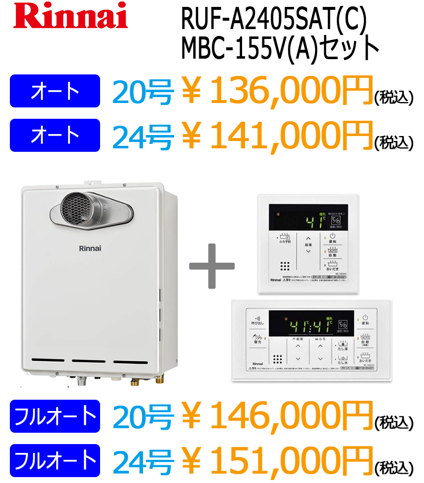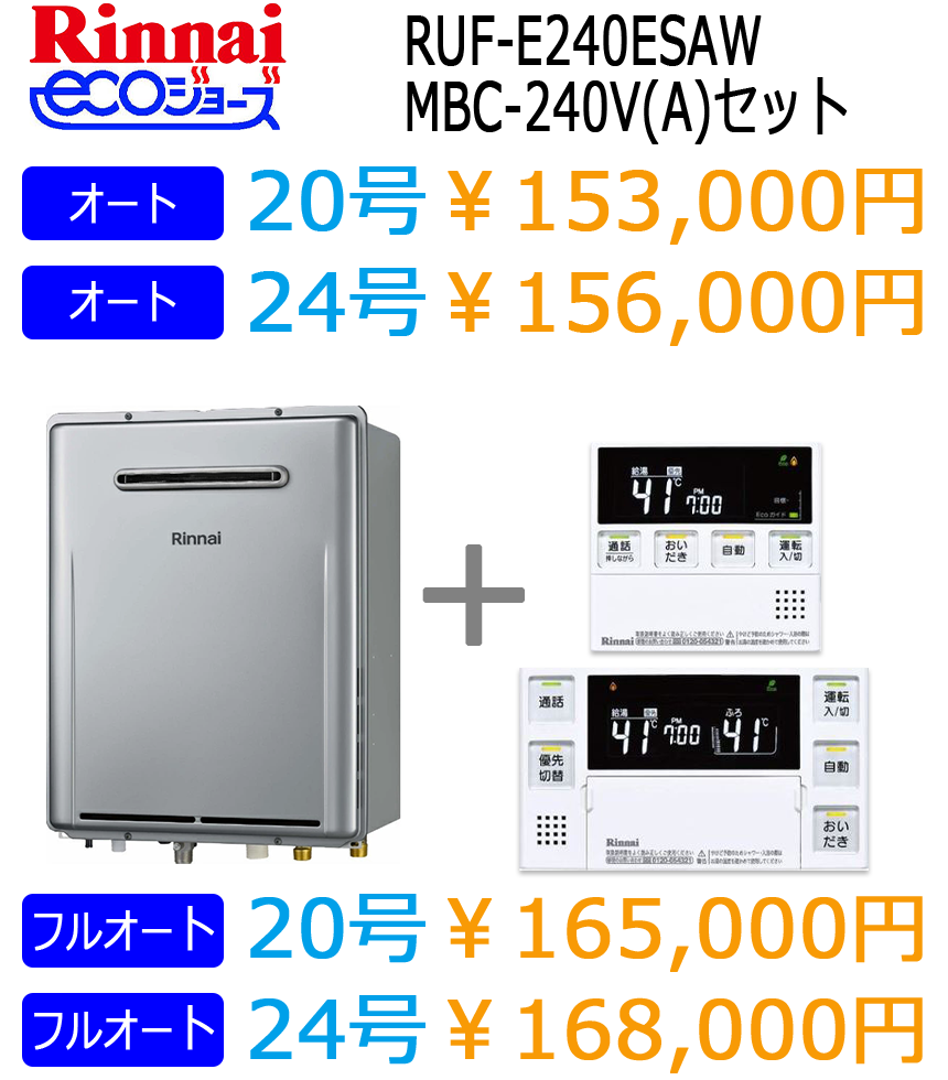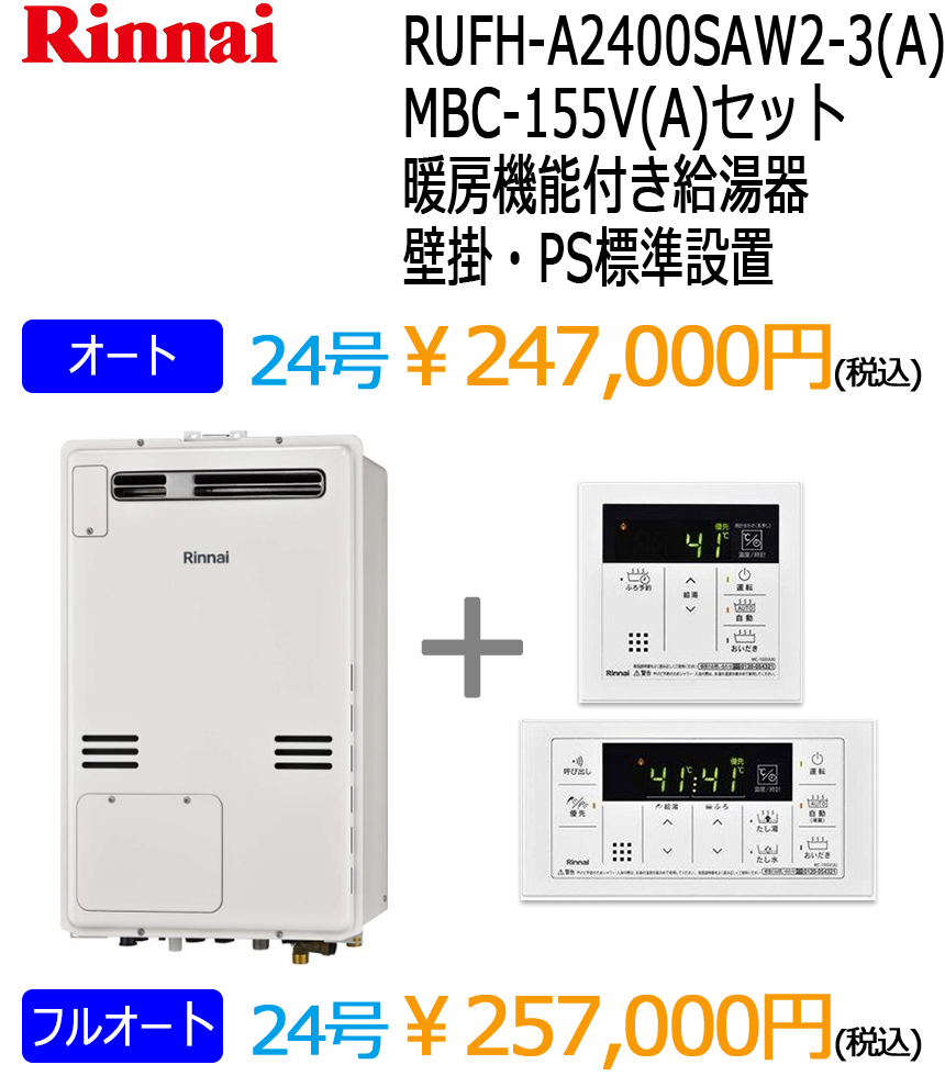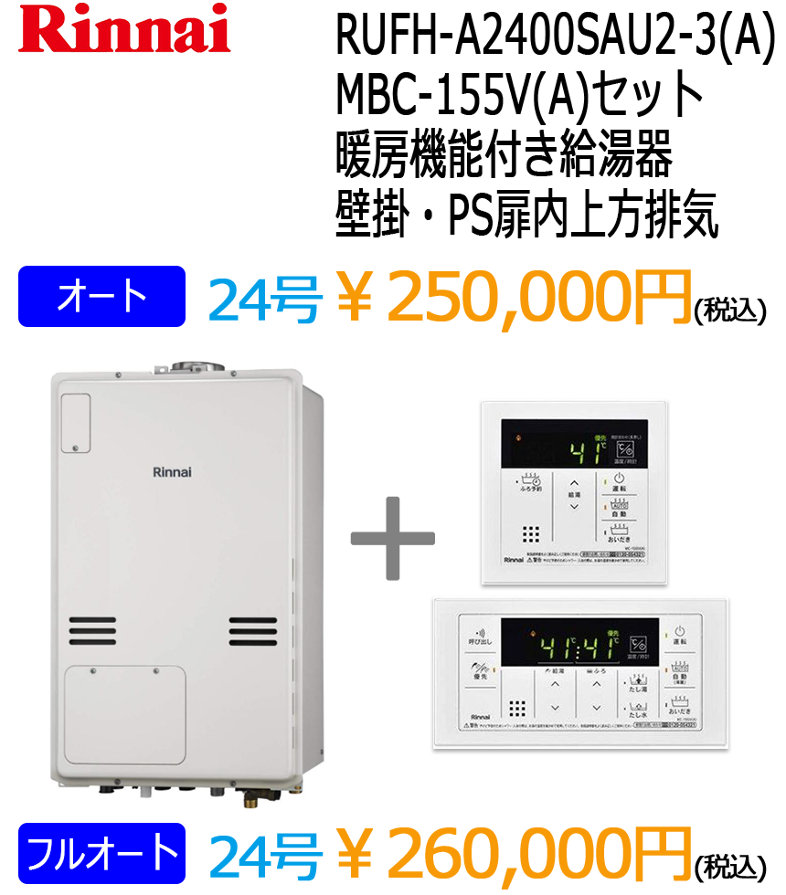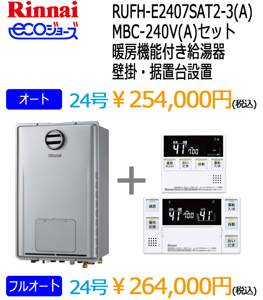 リンナイ暖房付きエコジョーズ給湯器(ノーリツはこちら)※表示価格は税込です。
