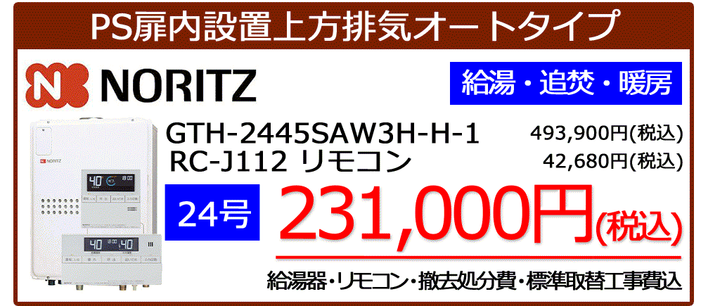 GTH-2445SAW3H-1 BL+RC-J112リモコンセット標準工事税込み