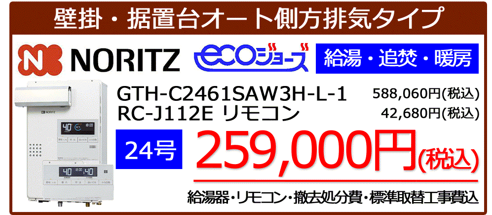 GTH-C2461SAW6H-1 BL+RC-J112Eリモコンセット標準工事税込み