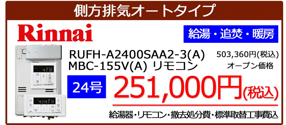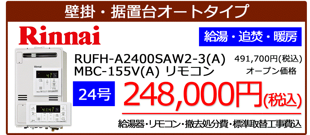 リンナイ暖房機能付き給湯器が工事税込みで安い!
