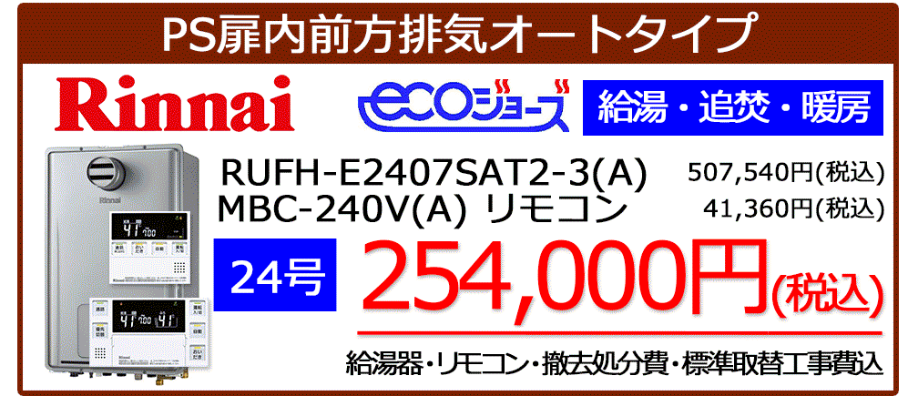 RUFH-E2407SAW2-3(A)+MBC-240V(A)リモコンセット標準工事税込み