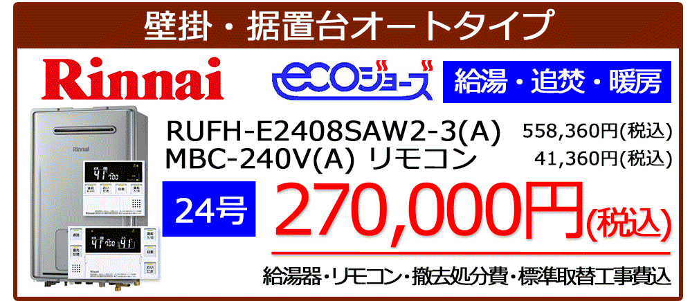 リンナイ暖房機能付給湯器が工事税込みで安い!