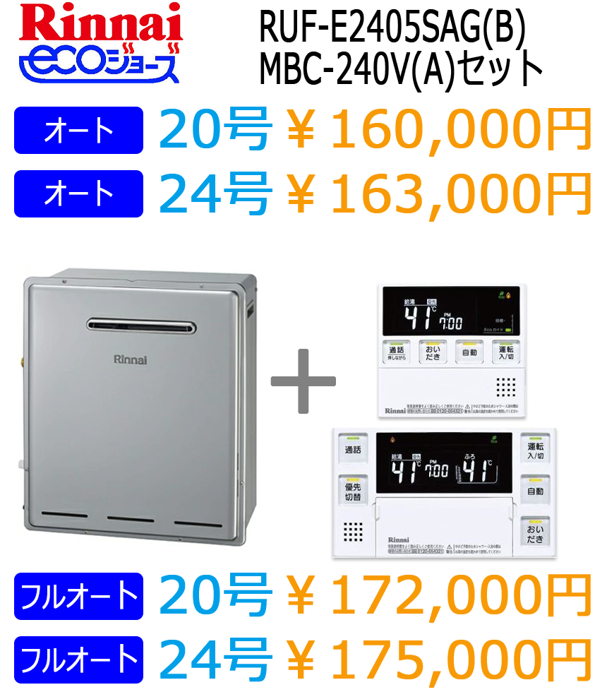 - 工事費込 :ノーリツEco20号14,7万円標準工事費税込