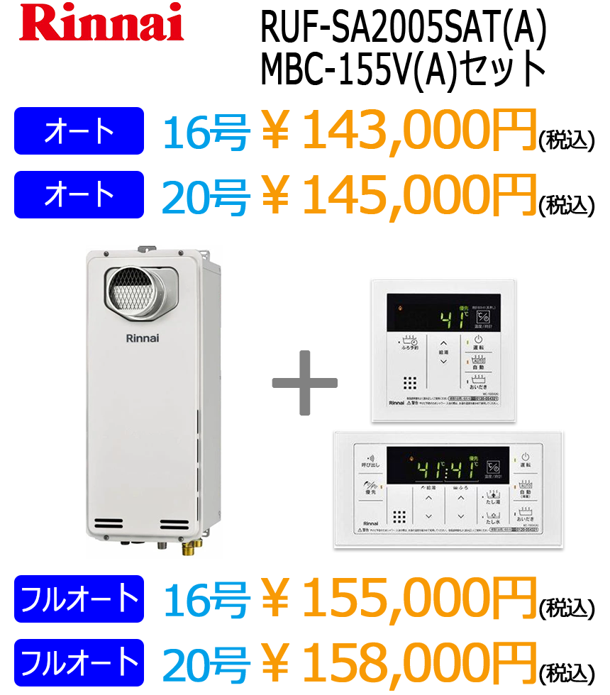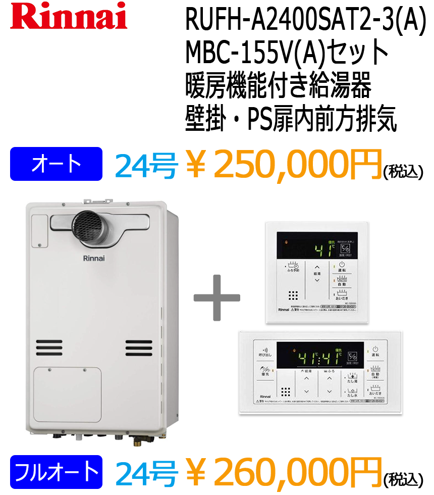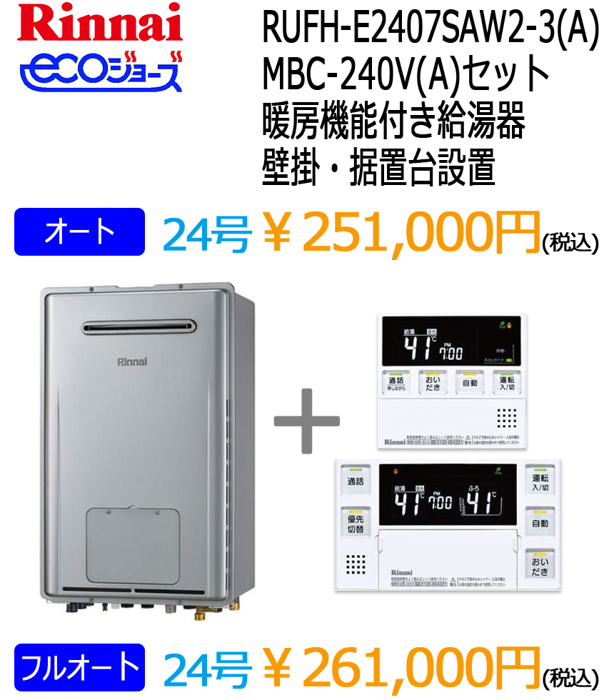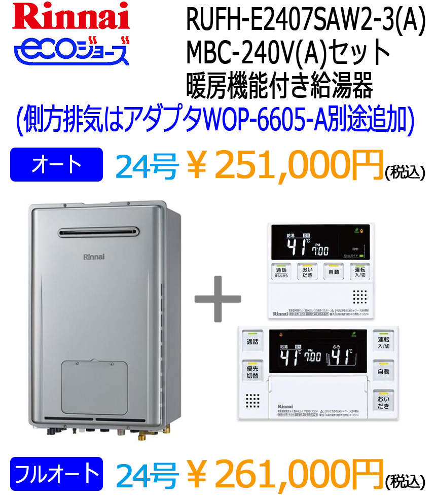 リンナイ暖房付きエコジョーズ給湯器(ノーリツはこちら)※表示価格は税込です。